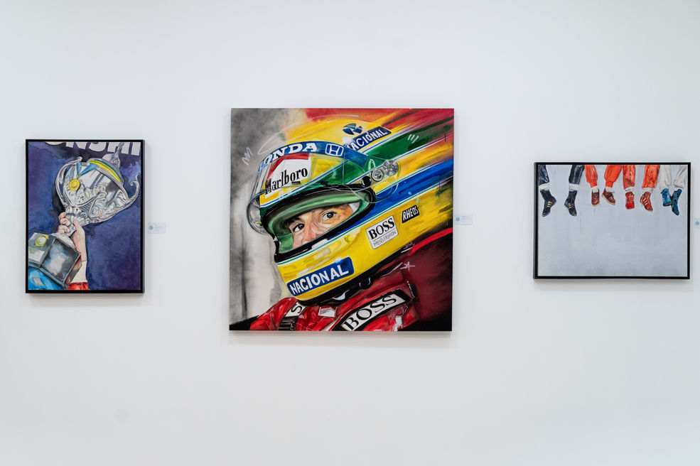 A exposição é uma investigação sobre concentração, risco e identidade. O piloto, carrega uma solidão que contrasta com o espetáculo que o cerca. A pintura captura exatamente esse ponto de contenção.
